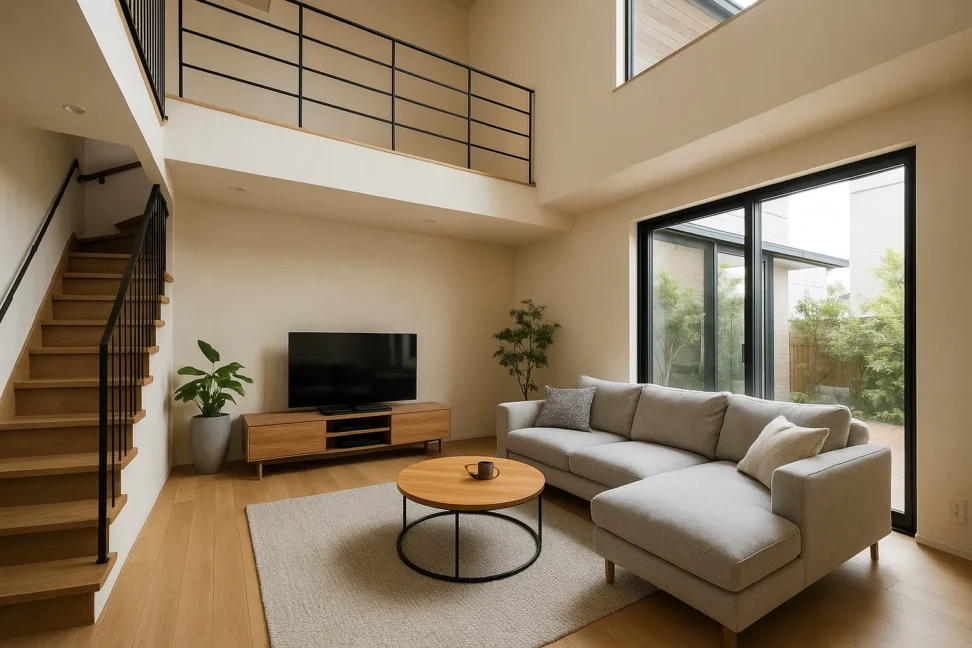 吹き抜け空間を快適にするには、窓や天井の断熱・遮熱性能をしっかり確保することが重要です。具体的には、樹脂サッシとLow-E複層ガラスの採用や屋根・天井の断熱強化が基本になります。また、外付けのシェードやブラインドを活用することで日差しをコントロールし、室内の温度上昇を抑えることもできます。
